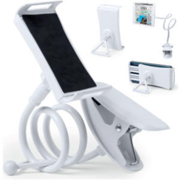 Handy multipurpose holder for mobile devices. In a white smart finishing, with a flexible wire of 50 cm length. Holder with 360 rotation mechanism and up to 45 inclination. Solid clamp holder and presented in an attractive design box.