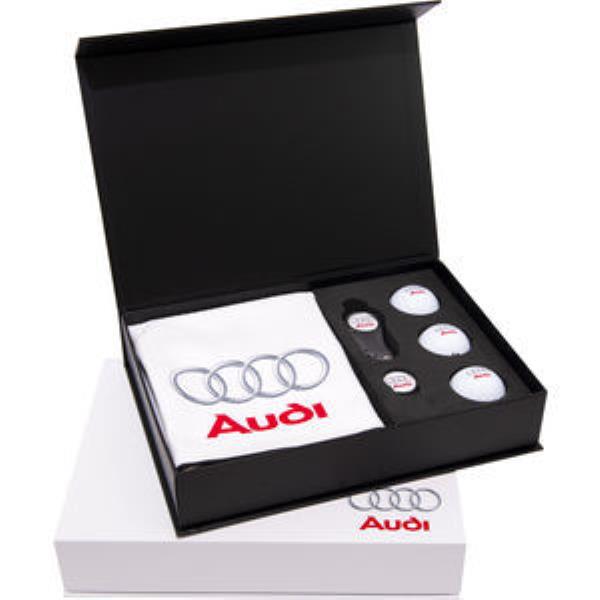 Wooden Flix Pro 2.0 Golf Presentation Box with full Colour direct digital print to the wooden box OR Laser Engraved logo and packed inside with 3 x Srixon Distance golf balls printed on 1 pole up to full colour, 1 x Flix Pro 2.0 golf automatic divot repair tool with White Crystal ball marker with full colour digital and resin dome finish, 1 x additional Crystal ball marker and 1 x Golf Towel (Choice of a Dormi Players or Dormi Tri Fold printed golf towel both printed up to full colour to 1 side, the rear can be printed a block colour for additional cost OR a Velour or Waffle Tri Fold golf towel with embroidery to 1 position with no limit on stitches) Origination charge applies. Golf balls can be upgraded to selected golf balls for additional costs. This set must be ordered in denominations of 4