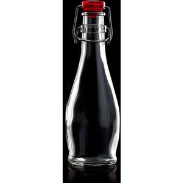 Small flip top water bottle with red plastic stopper 35cl, 220mm high bulk packed in 6's