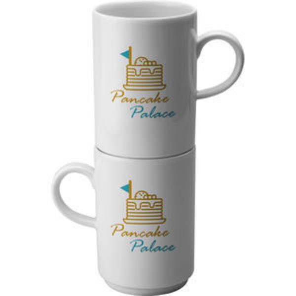 The Stackable mug is a unique porcelain mug that can be stacked. Its straight sides allow for a large transfer print area. A durable, quality product from Villeroy & Boch.