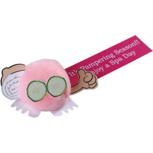 Spa Day Logobug - with your promotional message printed in Full Colour on Ribbon. Part of our extensive Logobug Range this Spa Day Logobug with Cucumber eye patches and Towel under arm - is an ideal give-away for a Health Spa Promotion.Can even be used as a Pampering Session or Treatment token. Choose from a large selection of Pom colours to suit your branding.