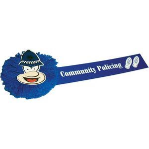 Policeman Mophead Character with full colour printed ribbon and self adhesive base.