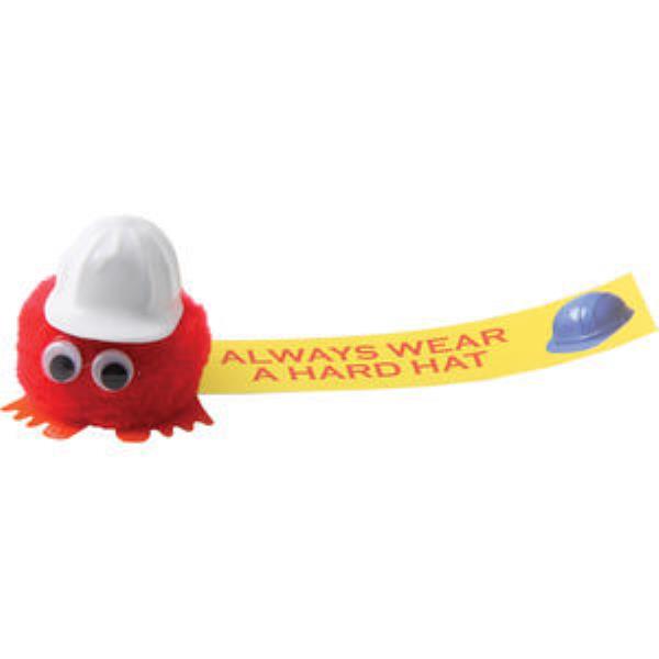 Hard Hat Logobug - with your promotional message printed in Full Colour on Ribbon. Part of our extensive Hatter Logobug Range this Hard Hat Builder Logobug makes an ideal promotional give-away. Choose from a large selection of Pom and Feet colours to suit your branding.