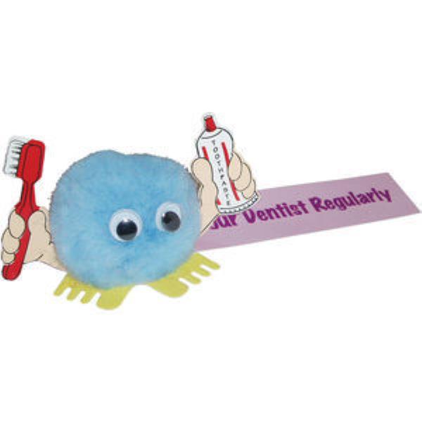 Original Advertising Logobug holding a Toothbrush & Paste with your promotional message printed in Full Colour on Ribbon. Part of our extensive range of Hand Holder Logobugs - makes an excellent give-away for a Dentist Hygiene or Education Campaign. Choose from a large selection of Pom and Feet Colours to suit your Branding.