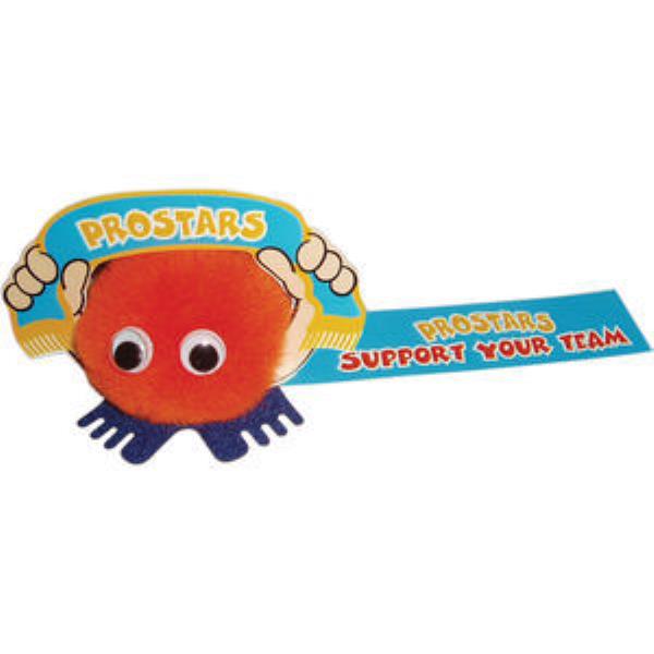 Original Advertising Logobug holding a Team Scarf - with your promotional message printed in Full Colour on Scarf and Ribbon. Part of our extensive Hand Holder Logobug Range - makes an ideal give-away for a Sports Event. Choose from a large selection of Pom and Feet Colours to suit your Branding.