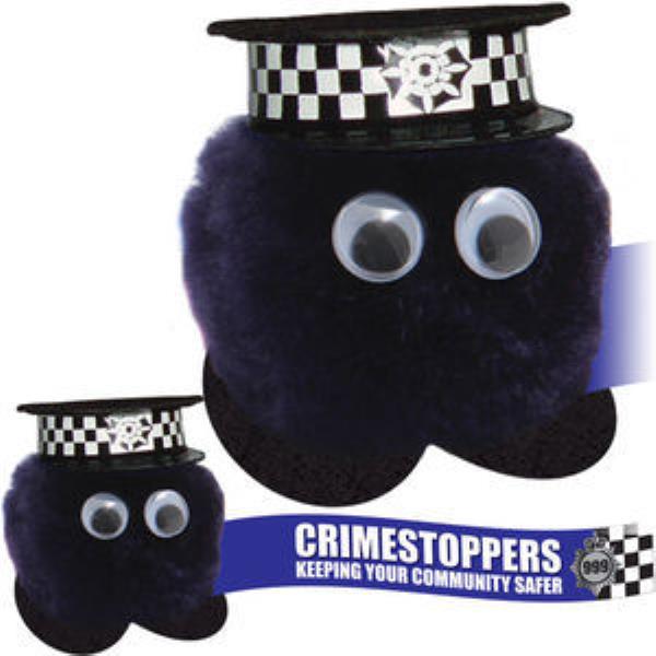 Traffic Cop Logobug with Hat and your promotional message printed on Ribbon in Full Colour. Part of our extensive Hatter Logobug Range - makes an excellent give-away for a Traffic Safety Campaign. Popular Logobugs are collectable so makes them less likely to be thrown away keeping your message in view for longer. Available in a large selection of Pom and Feet colours to suit your branding.