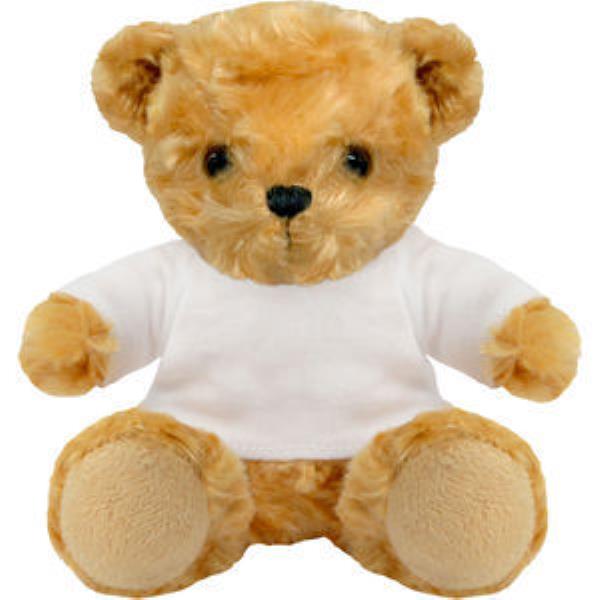 BLANK PLUSH 13CM SOFT TOY VICTORIA TEDDY BEAR with White Tee Shirt. Suitable for Sublimation & Tranfer Print. Suitable for 3, Super Soft, Luxurious Rose, Swirl Embossed Plush Fur & Glass Studded Eyes, Seated Height 13cm Approx. Available in 3 Sizes, Minimum Quantity: 10.