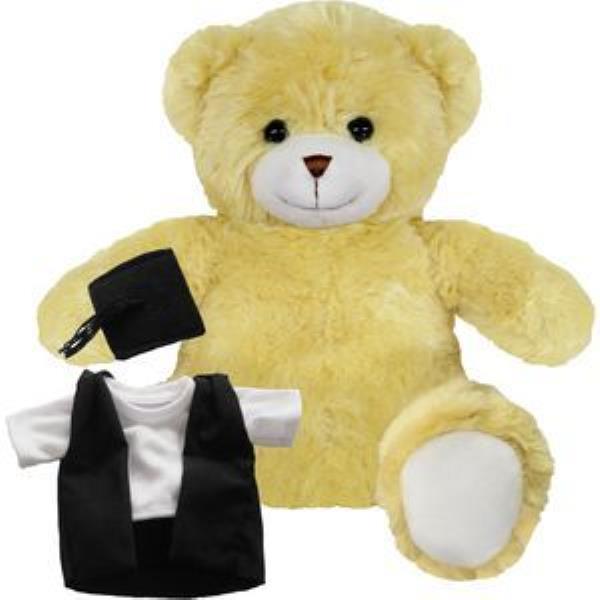 BLANK PLUSH SOFT TOY 20CM ELIZABETH TEDDY BEAR with Gradution Outfit. Elizabeth Plush Toy Bear Suitable for Age 3. with Glass Studded Eyes. Black Mortar Board Cap & Graduate Gown, Sitting Height 20cm Approx. Minimum Quantity: 10.