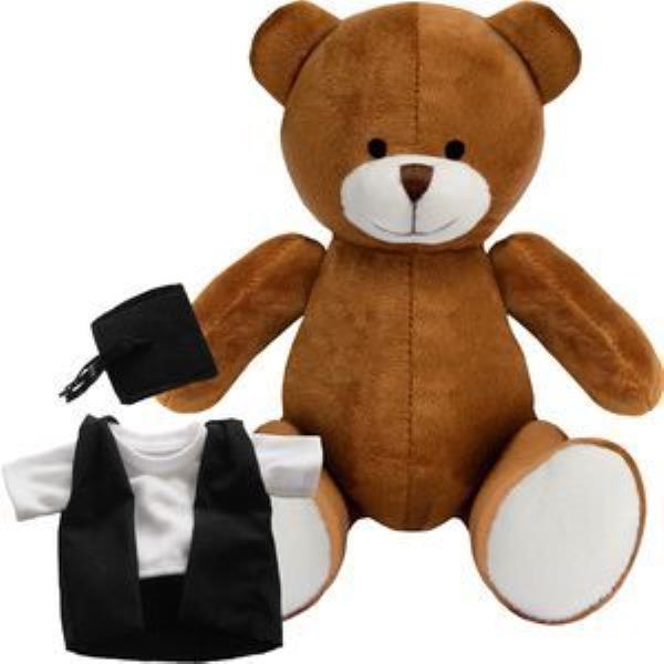 BLANK PLUSH SOFT TOY RICHARD TEDDY BEAR with Graduation Outfit. Richard Plush Toy Bear, Black Mortar Board Cap & Graduate Gown, Suitable for All Ages, Machine Embroidered Facial Features, Seated Height 20cm Approx. Minimum Quantity: 10.