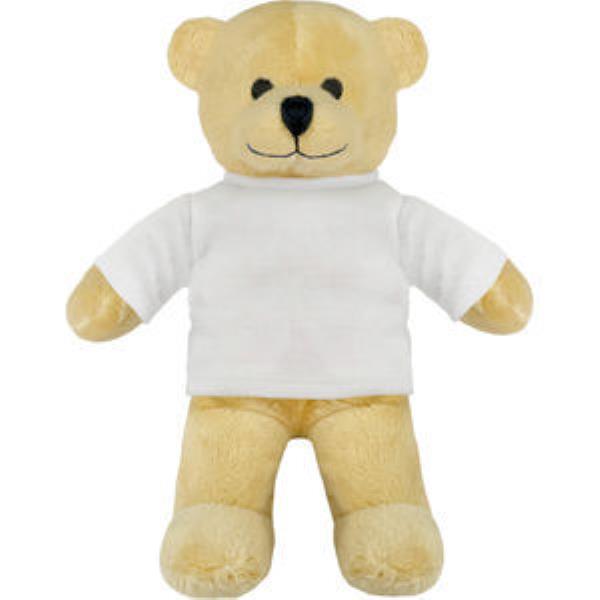 BLANK PLUSH SOFT TOY HENRY II TEDDY BEAR with White Tee Shirt. Henry Ii Plush Toy Bear - Light Brown, Suitable for All Ages, Suitable for Sublimation & Tranfer Print, Machine Embroidered Facial Features, Seated Height 12cm Approx, Available in 3 Colours. Minimum Quantity: 10.
