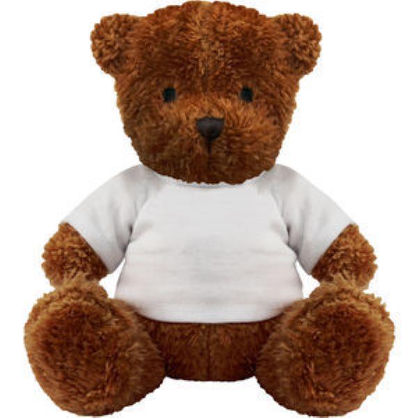 BLANK PLUSH SOFT TOY JAMES I TEDDY BEAR with White Tee Shirt. Suitable for Sublimation & Tranfer Print, James I Plush Toy Bear, Suitable for All Ages, Machine Embroidered Facial Features, Seated Height 17cm Approx, Brown Colour Fur - Available in 3 Colours. Minimum Quantity: 10.