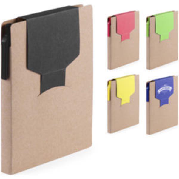 Cardboard sticky note set including 25 sticky note 90 x 76mm, 25 sticky notes 38 x 60 mm, 100 mini sticky note 48 x 12mm and a 70 sheet notepad. Recycled Cardboard Pen Included. Blue ink.