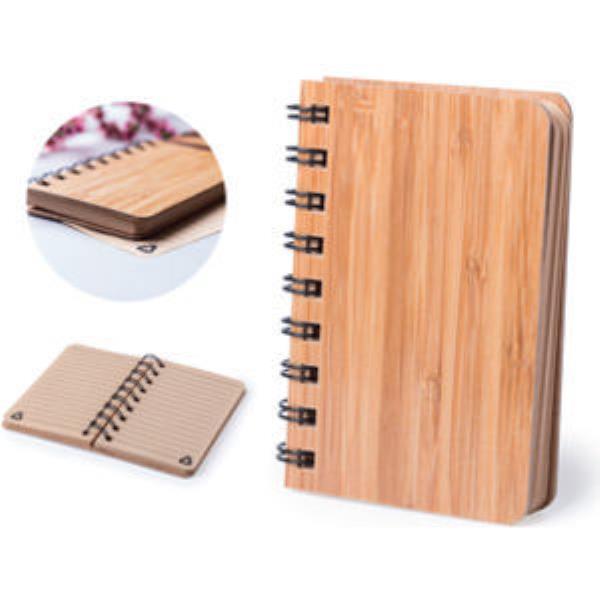 Nature line, ring notepad with hard, bamboo wood covers. Compact design, with 80 sheets in striped and ecodesign.