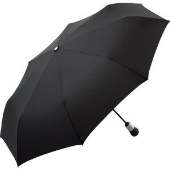 n/close oversize mini umbrella with exclusive gear stick handle Convenient automatic open/close function for quick opening and closing, high-quality windproof system for maximum frame flexibility in stormy conditions, high quality rib construction made of fibreglas and plastic, water and dirt-repellent cover properties through original Teflon fabric protector, dull silver gear stick handle with promotional labelling option (e. g. shifting gate), handle with special finish parts and integrated push button, convenient sleeve with press button. Also available as midsize umbrella (art. 4155).