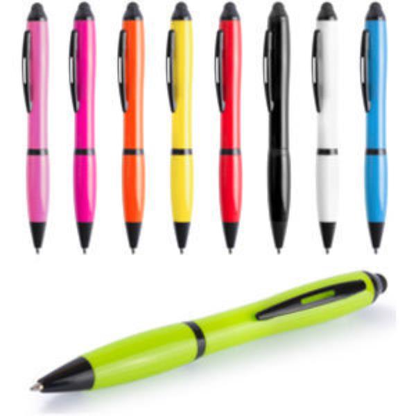 Twist action ballpoint pen with coloured body and black trim. Includes stylus, suitable for smart phones, tablets, iPhones and iPads. Blue ink.