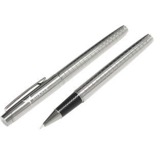 ! Exceptionally smart, professional and elegant for extra brand gravitas. Robust solid heavyweight look and feel. Pull off cap with shiny silver finish barrel, cap & nib with a stylish grid effect pattern to outer barrel. Black inner trim to nib. High quality black ink refill.