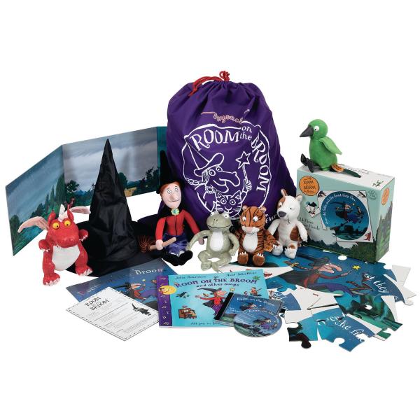 Iggety, Ziggety, Zaggety, Zoom! The witch and her cat fly happily over forests, rivers and mountains on their broomstick until a stormy wind blows away the witch’s hat, bow and wand. They are retrieved by a dog, a bird and a frog, and each animal asks for a ride on the broom. This magical story is perfect for role play and this Storysack includes everything you need to bring it to life; story book, 6 puppets, 24 piece floor jigsaw, witches hat, audio CD and song book and more!