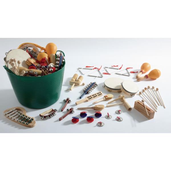 An outstanding value set of instruments stored within a handy tub. Instruments are aimed at Key Stage 1 children and the pack contains sufficient instruments for 56 pupils to use at one time. Perfect for multi-class productions, these instruments have been selected to help children play simple tunes and rhymes by ear and from symbols.Contains:• 2x 8 Note Chime Bar Set• 4 x Tambourine• 2x 5 Bells Handbell• 2x Triangle W/Beater• 2x Tone Block W/Beater• 2x Wood Block With Beater• 2x Maracas• 2x Double Quiro (Agog)• 2x Length Stock Handbell• 2x Clusterbells • 2x Castanet• 2x Wooden Solo Tambourine• 2x Finger Cymbals• 2x Handle Castanets• 2x Mallets• 1x Teacher's Notes• 1x Flexi TubContent may vary