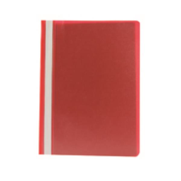 Q-Connect Project Folders. Quality light weight folders with a glass clear front, coloured opaque back, full length title strip and standard 8cm 2-prong bar mechanism, perfect for quotes, reports and proposals. Colour - Clear/Red.