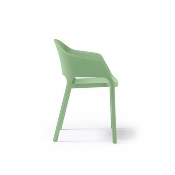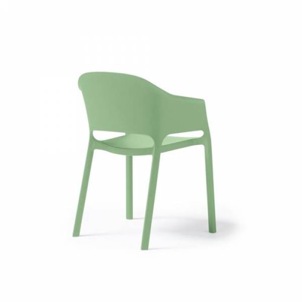 Contra one piece polypropylene chair with integrated arms in green