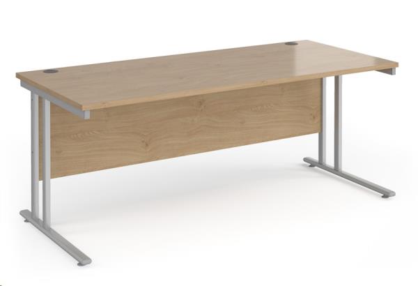 Maestro 25 straight desk 1800mm x 800mm - silver cantilever leg frame, Kendal oak top