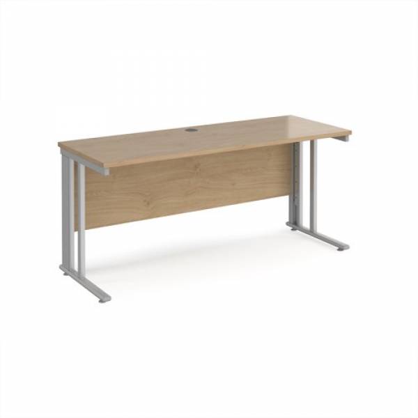 | Rectangular desks 600mm deep with silver cable managed legs and two cable access ports |
