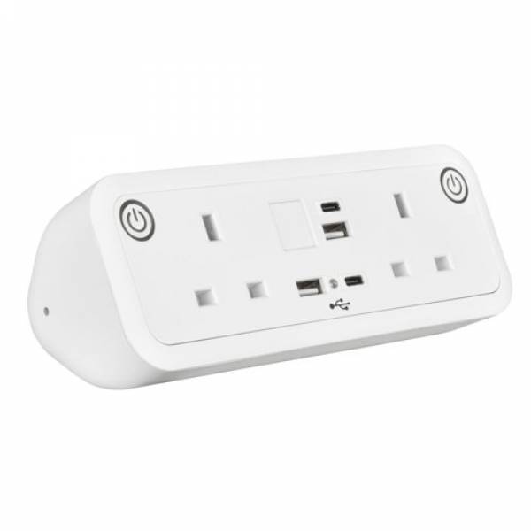 Comet desk top power module 2 x UK sockets, USB A&C fast charge - White