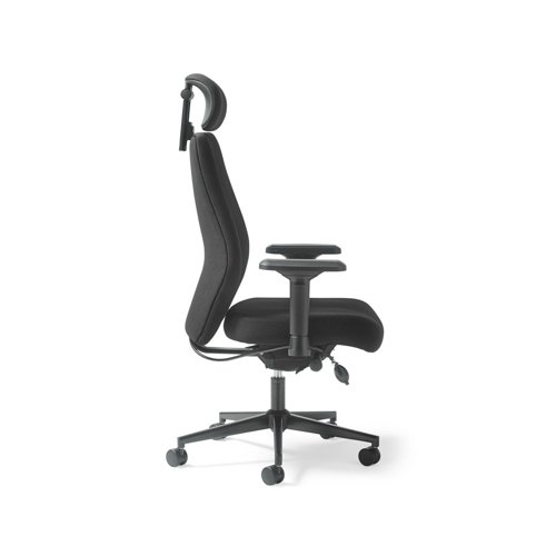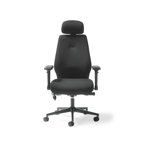 Hatha high back posture task chair with black fabric seat and back, headrest & adjustable arms