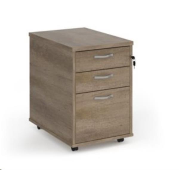 Tall mobile 3 drawer pedestal with silver handles 600mm deep - Nebraska Oak
