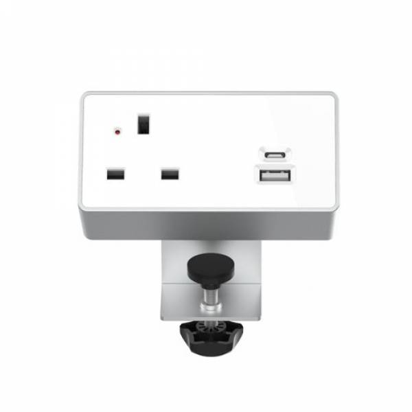 Desktop Power Module 1x 240v UK Socket 30W USB-C, 27W USB-A Silver / White