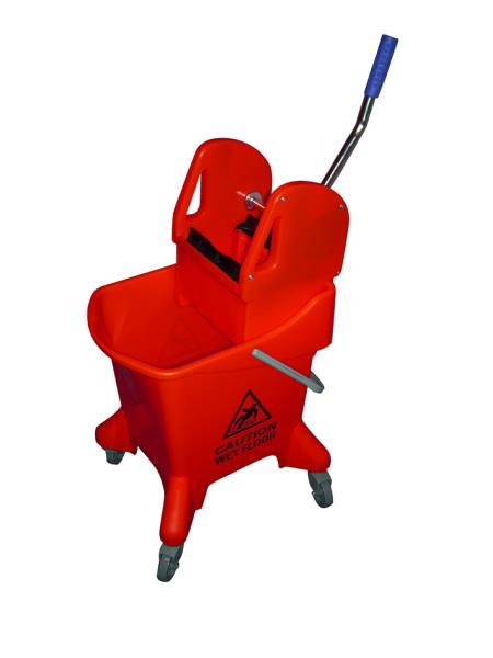 A competitively priced colour coded mopping system complete with gear press wringer which is ideal for use when mopping small to medium size areas. Easy to manoeuvre in addition to featuring a large carrying handle. ‘Caution wet floor’ is printed on both sides of the bucket. Large carrying handle. Available in 4 hygiene colours. Easy to manoeuvre. Use with Kentucky mops.