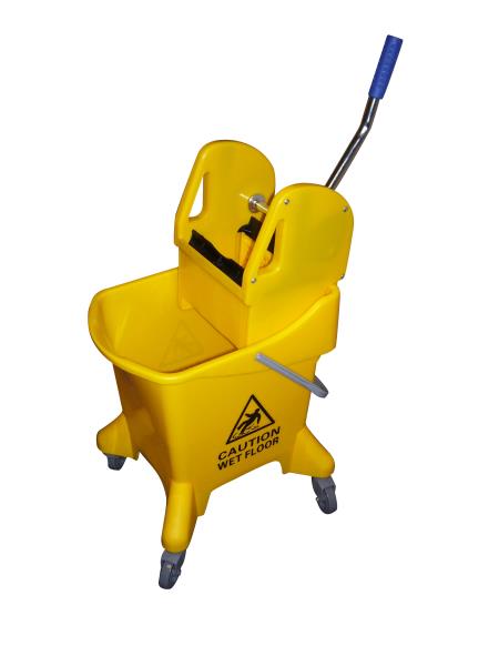 A competitively priced colour coded mopping system complete with gear press wringer which is ideal for use when mopping small to medium size areas. Easy to manoeuvre in addition to featuring a large carrying handle. ‘Caution wet floor’ is printed on both sides of the bucket. Large carrying handle. Available in 4 hygiene colours. Easy to manoeuvre. Use with Kentucky mops.
