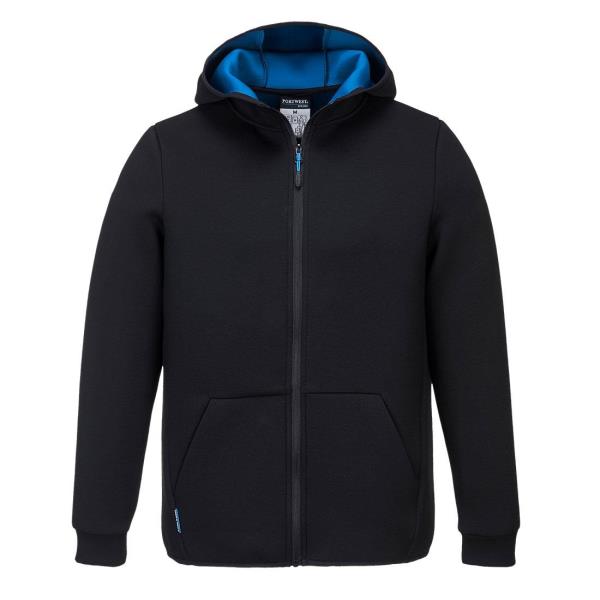 Technical work jacket made with our unique and highly innovative two faced premium fabric which gives a softer feel inside and out. This jacket offers excellent performance while being incredibly comfortable. Kangaroo pockets on the front are ideal for keeping hands warm. Interchangeable zip pullers in blue, red and lime green are supplied for easy integration of corporate colours.