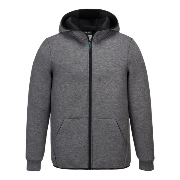 Technical work jacket made with our unique and highly innovative two faced premium fabric which gives a softer feel inside and out. This jacket offers excellent performance while being incredibly comfortable. Kangaroo pockets on the front are ideal for keeping hands warm. Interchangeable zip pullers in blue, red and lime green are supplied for easy integration of corporate colours.