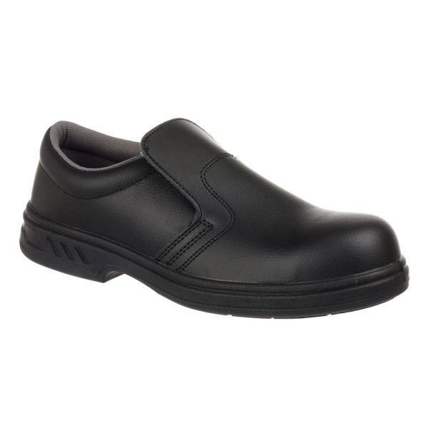 Outstanding slip-on style ideal for medical and food industries. The easy to clean microfibre upper is practical, safe and durable. Steel toecap and excellent slip resistance.