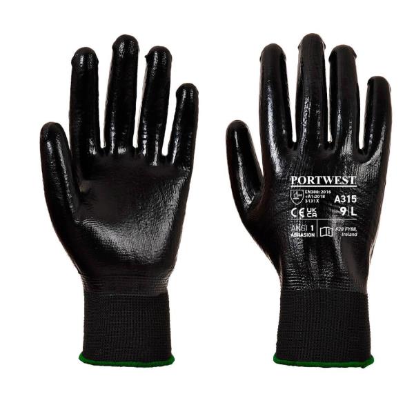 The "All-Flex" super-light glove addresses the need in the marketplace for an ergonomically designed glove providing greater comfort and quality. An elasticated knit wrist liner means a comfortable snug fit while the full coverage of nitrile provides high abrasion resistance, superior liquid resistance, great flexibility and grip.