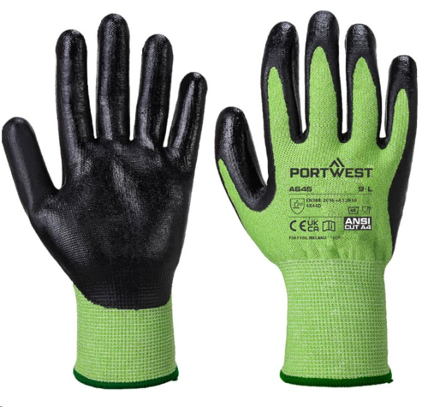 An extremely comfortable cut level D glove to EN388:2016. Nitrile foam dipping for enhanced grip. Bright green liner provides easy identification.