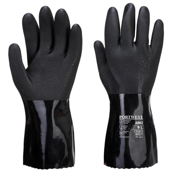 Premium quality ESD PVC chemical gauntlet. Designed for use in areas where static build up could be a risk. Excellent dexterity with secure grip from the sandy palm finish. Seamless liner ensures comfort and flexibility.