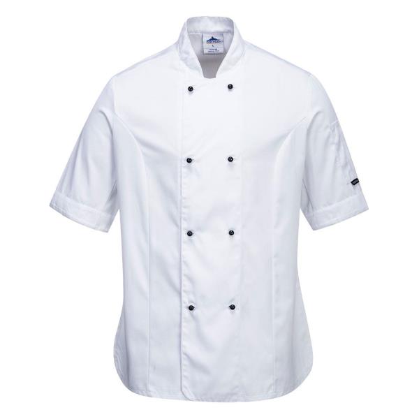 Cool and comfortable, the Rachel Chefs Jacket is specifically designed for women. Featuring MeshAir aerated mesh underarms, side vents & cuff vents, with shaped panels for a contemporary fit.