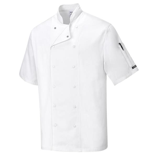 Practical, stylish and hardwearing, the Aberdeen Jacket has an array of useful features including: a handy sleeve pocket, 6 rows of white press studs, MeshAir aerated mesh underarms and shaped back panels for a contemporary fit. The durable fabric allows the garment to keep its shape wash after wash.