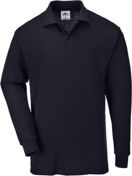 This stylish and practical long sleeved polo shirt offers full upper body comfort for casual wear. Classic features include a rib knitted collar and cuffs a three button placket and matching buttons. A heavyweight polyester cotton mix ensures garment durability.