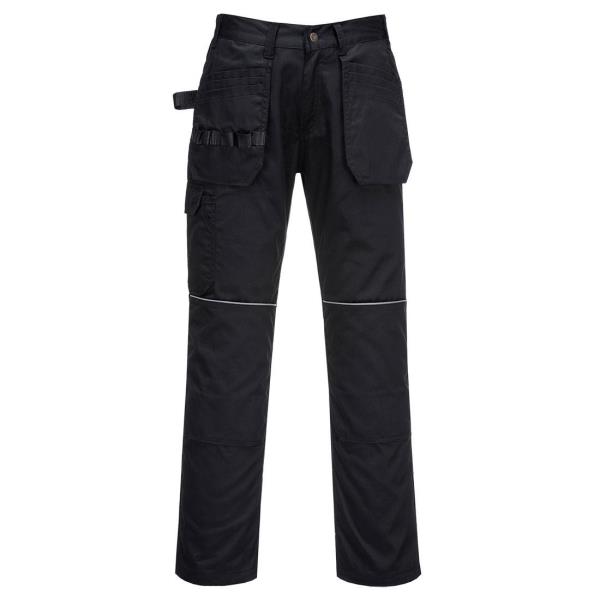 Superb value holster pocket trouser for all trade uses. Extremely versatile pocket storage for tools and personal belongings. Bottom loading knee pad pockets allow insertion of knee pads if required. Reflective trim and modern colourways makes this garment an all round winner.