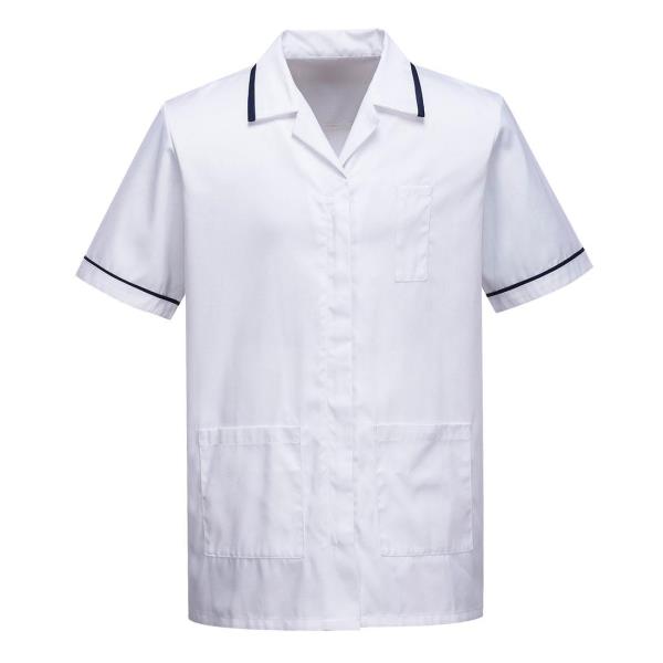 This mens healthcare tunic is made from high quality Kingsmill fabric. Features include tipped collar edge with concealed zip front, a chest scissor pocket and two lower patch pockets. The polyester cotton mix fabric will maintain its fresh look wash after wash.