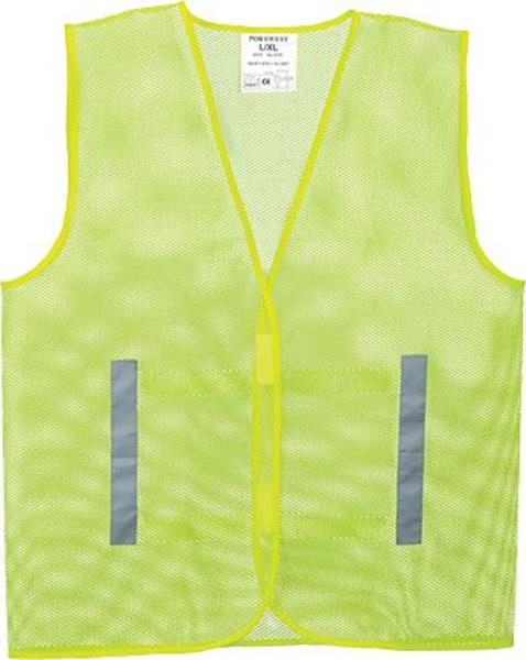 A lightweight breathable mesh vest with two strips of reflective tape on front and back.