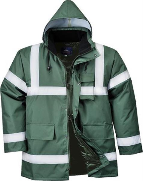 The Iona Lite Jacket offers added visibility in dull conditions. Features include two large pockets an easily accessible external mobile phone/radio pocket to the chest and a drawcord hood and hem for a snug fit.
