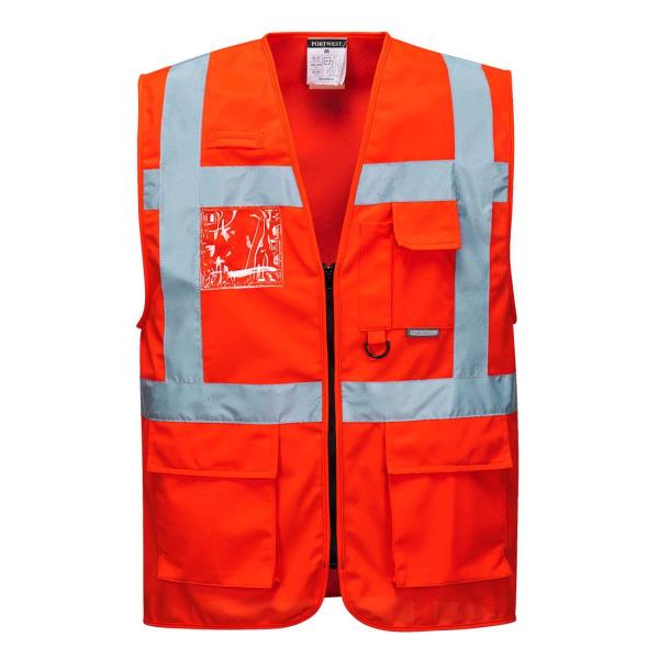 Revolutionary in its design, the executive vest combines the light weight of a waistcoat with the practicality of pockets for those situations when a jacket may be too warm. A clear ID pocket for security passes and cards complements this unique garment.