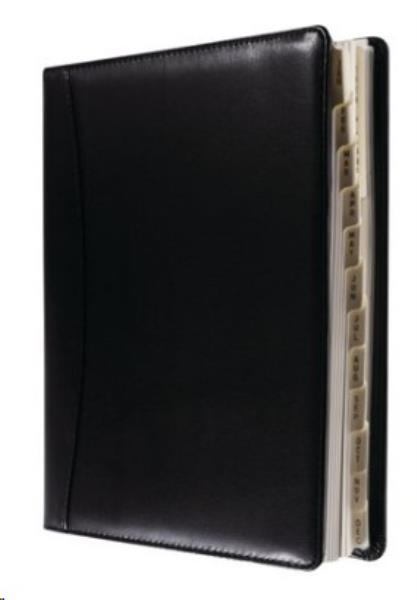 Refillable wirebound diary Week to view with appointments Luxury padded faux leather cover Monthly Mylar tabbing, removable A-Z personal directory and notebook Current and forward year planners Includes a pen holder and zip-lock section for receipts Includes 2 ribbon markers Colour: Black Dimensions: 246 x 164mm