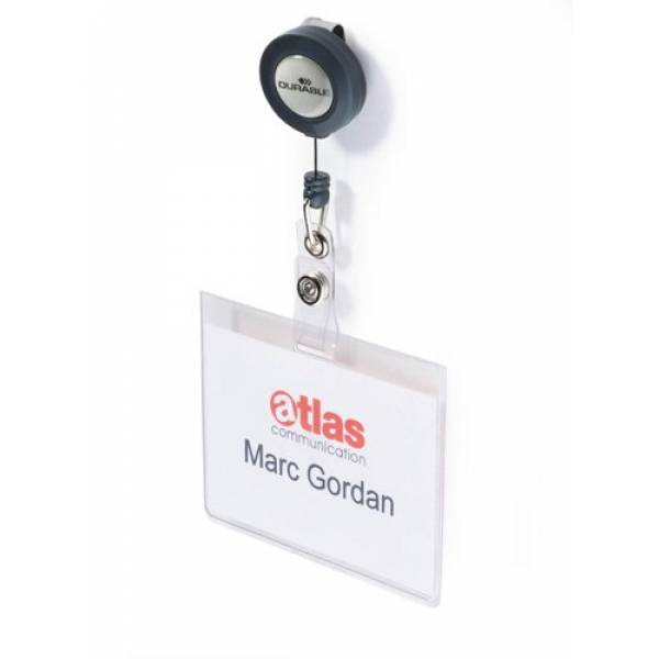 Durable Badge Reel Name Tag ID Card Holders + Inserts 60x90mm (Pack of 10) 8138/19
