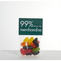Sweet Bag - Jelly Beans Pack of 1 Mouth watering assorted Jelly Beans in branded compostable/dissolvable sugar cane bag. A large 50g fill with full colour digital label to create an ethical and fun giveaway.