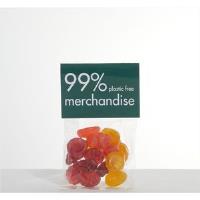 Sweet Bag - Vegan Fruit Gums Pack of 1 Vegan fruit gums are utterly delicious and totally more-ish. A large 50g in branded compostable/dissolvable sugar cane bag. Full colour digital label to create the ultimate ethical giveaway.